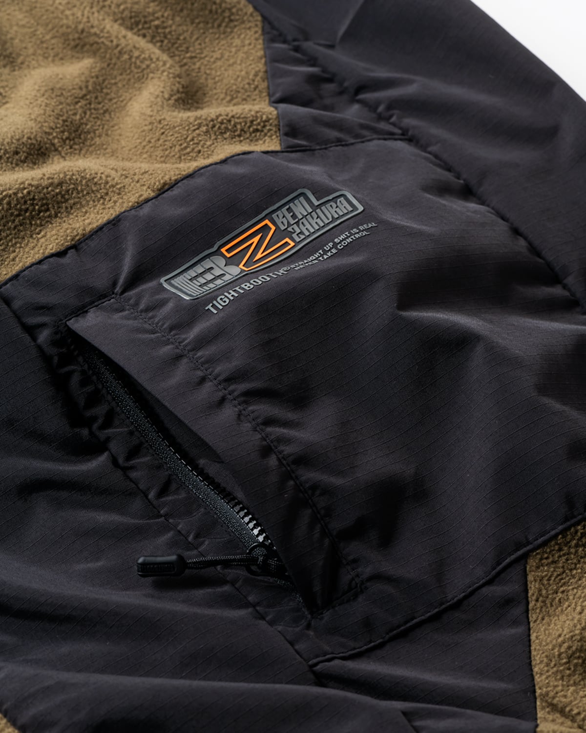 ・左腿部分に配置したポケットには、UV厚盛りプリントで紅桜とTIGHTBOOTHのロゴ入り。